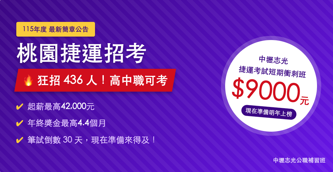 【115桃園捷運】搶進國營高薪!436人大招募|30天短期衝刺奪榜計畫