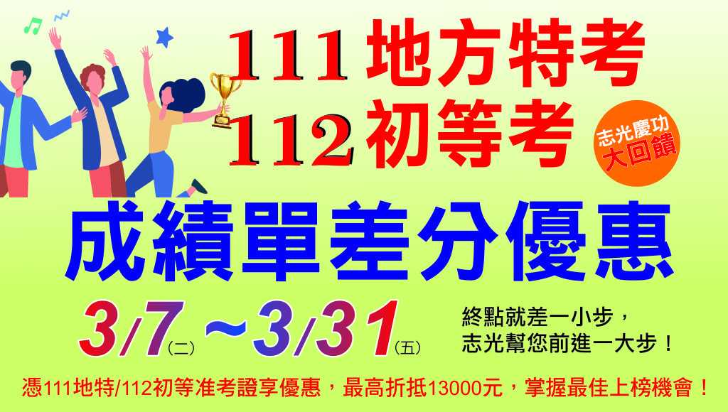 ※地特五等、地特四等考取生晉升專案:志光全力輔考,讓您最安心最優惠~