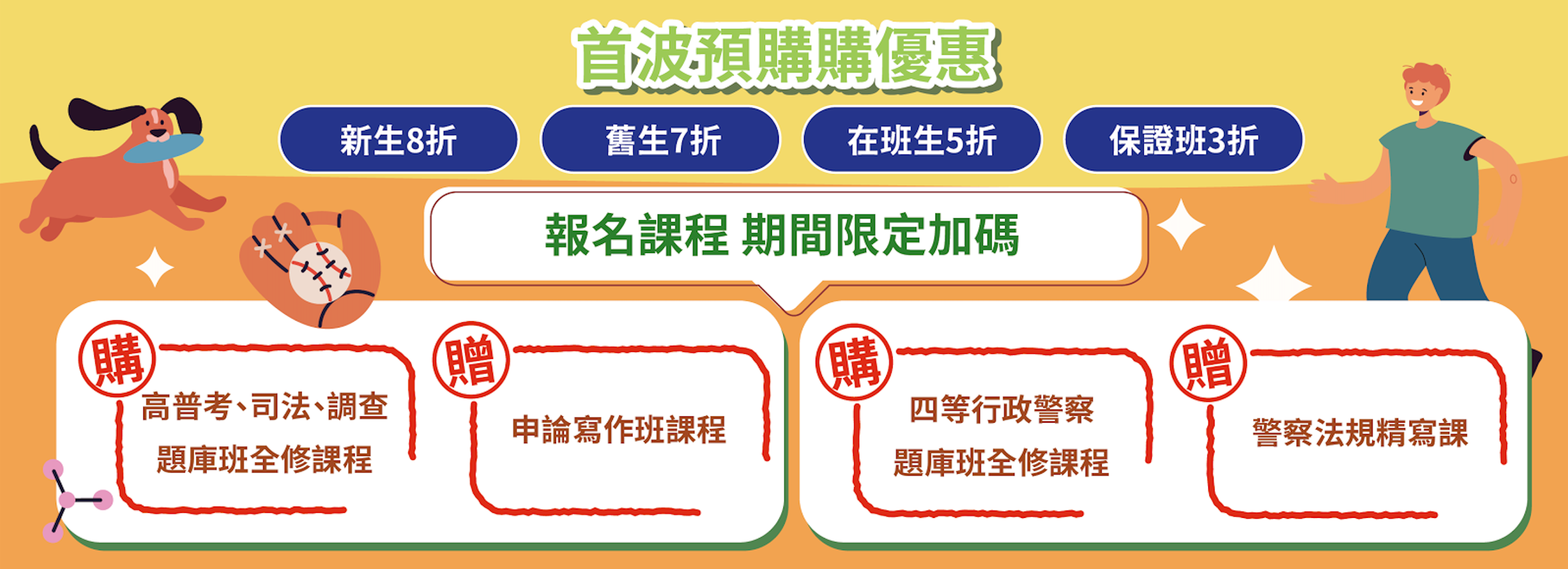 | 1.本課程僅限現場上課,無法補課及視訊上課 2.課程期間會提供作文紙讓同學於課堂上練習,請一定要實際寫作,只有這樣才能提升自己的實力 | |||