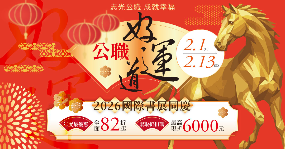 • 2 活動期間到『嘉義志光』報名面授/雲端函授/視訊正規全修(套)課程 + 現場繳清,即可獲得國考好書任選一本(以現場提供書籍為主,數量有限贈完即止)