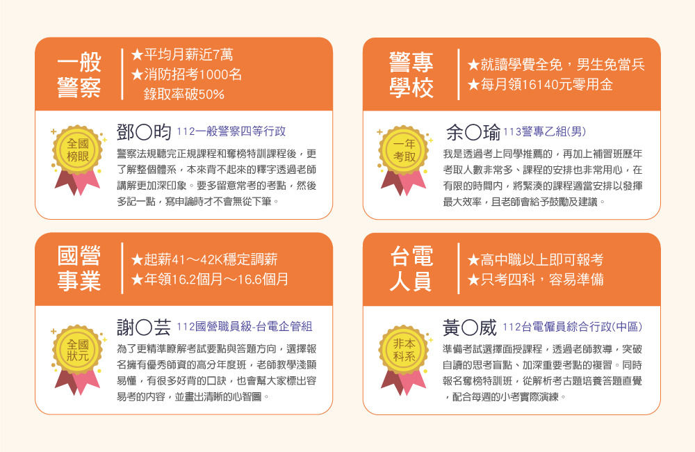 標籤: 高考三級 一般警察四等 警專考試 國營事業聯招新進人員 司法特考四等