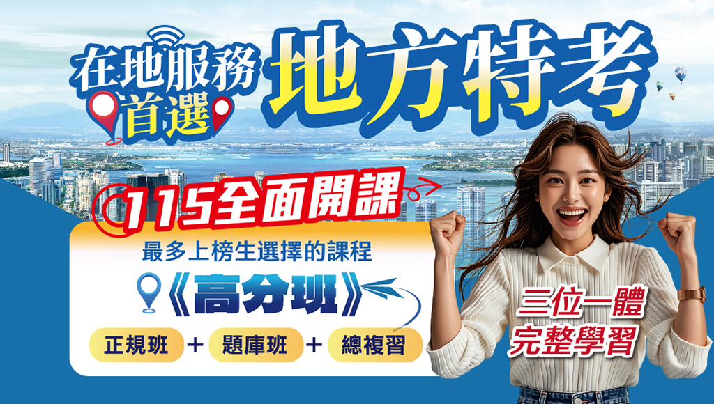 在地服務首選,115地方特考新班開課,12/31前報名全修84折起