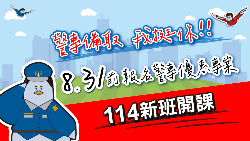 8/31前 憑警專備取成績單 報名享專屬優惠 再戰警專 趁現在 114新班開課囉~