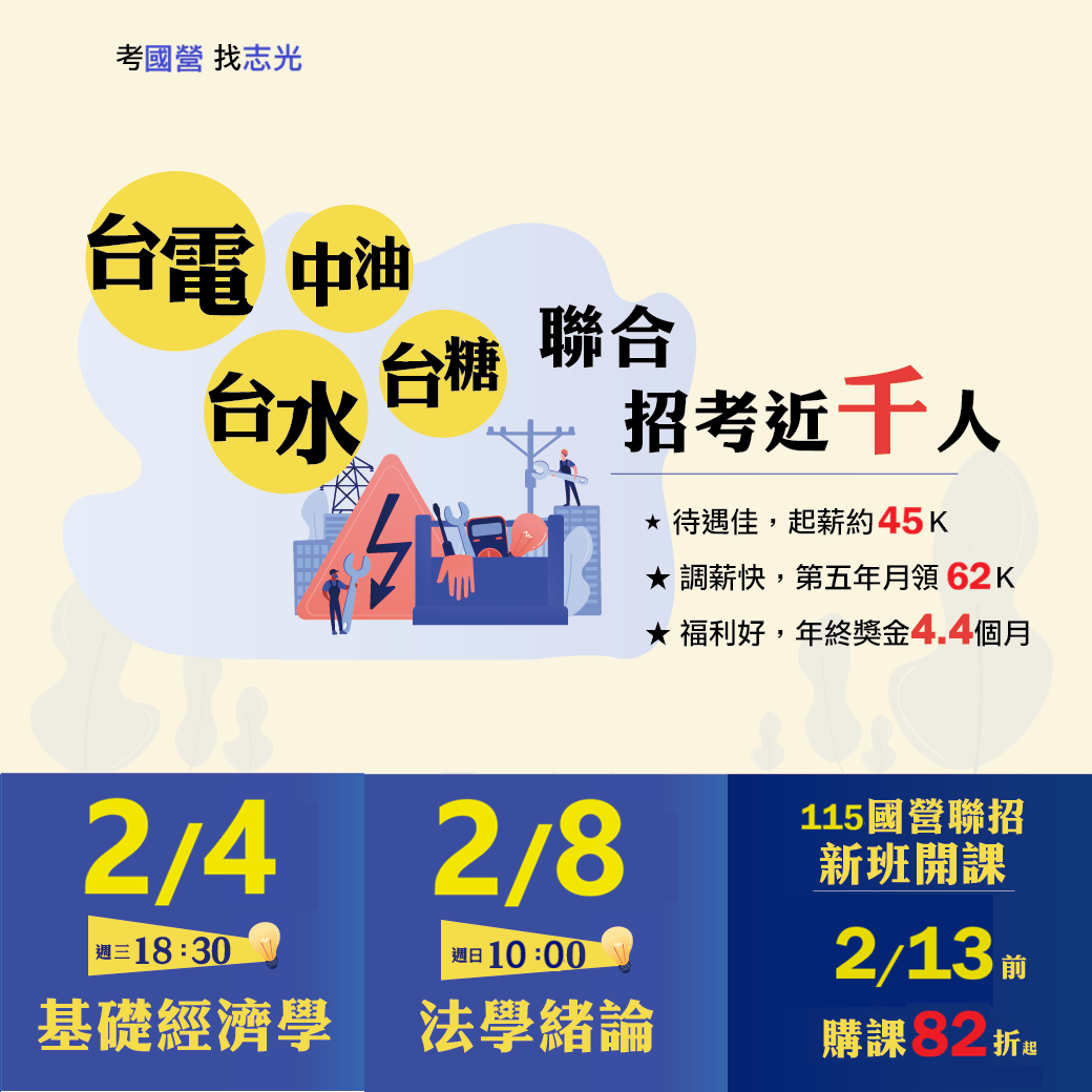 立即掌握2026年經濟部國營事業聯招最新資訊!起薪 44K 至 45K、五年後最高可達 62K。適合企管、人資、電機、機械與專業類別。