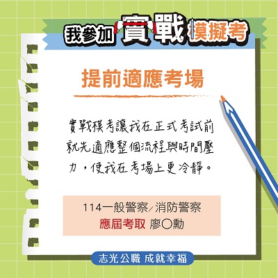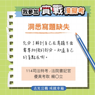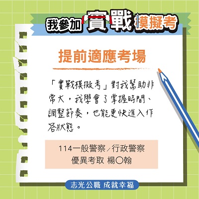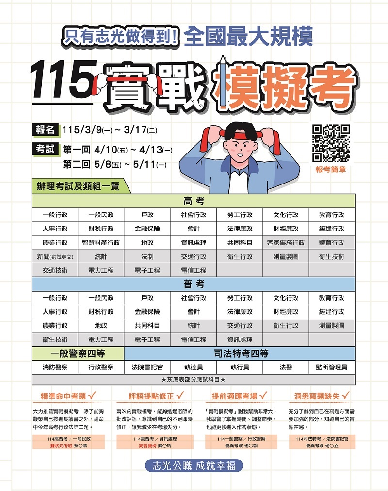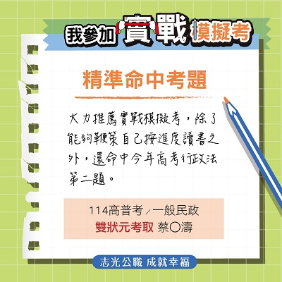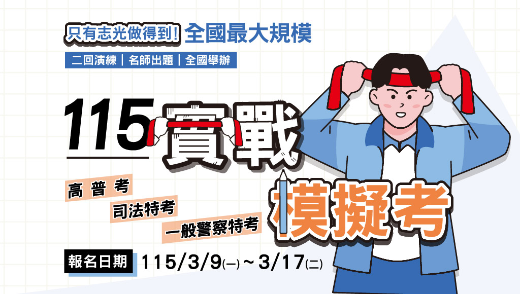 115年高考/普考/一般警察特考/司法特考實戰模擬考,報名一次可參加兩回模擬考