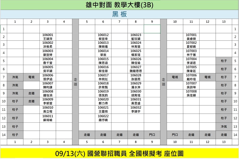 【國營職員】 114 年度全國模擬考-【座位圖公告】