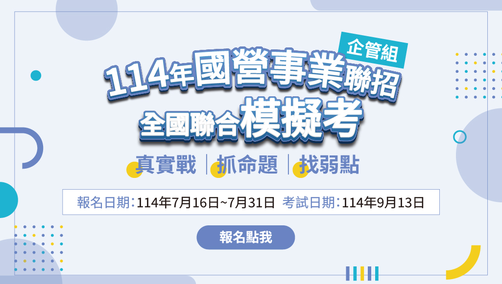 | 114年度【國營職員級】全國聯合模擬考 | ||||||
