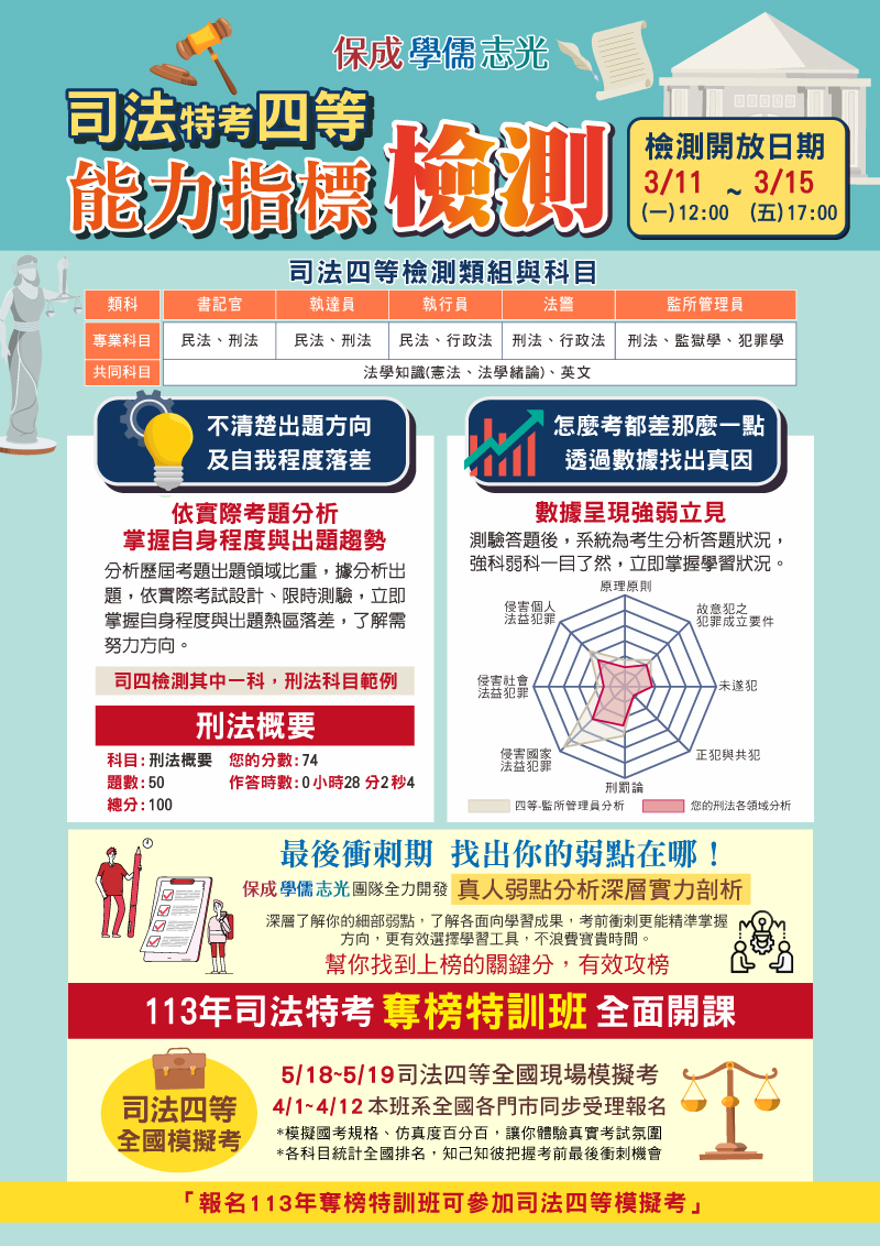 3/11-3/15司法四等線上能力指標檢測