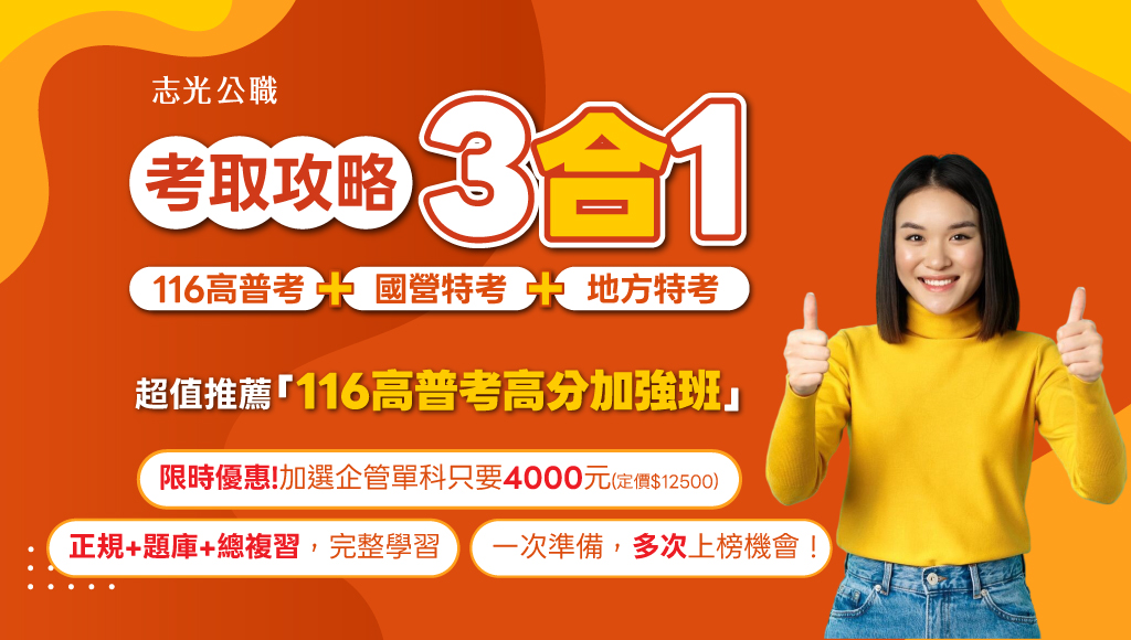 準備 116 高普考卻不知道從哪開始?本課程整合高普考正規班、題庫班與考前衝刺規劃,系統化帶你掌握高普考準備重點,適合想提升讀書效率與應試實力的考生,立即了解完整課程內容!