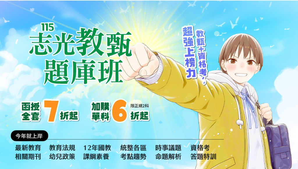 或 LINE@ 好友洽詢115教甄題庫班授課內容