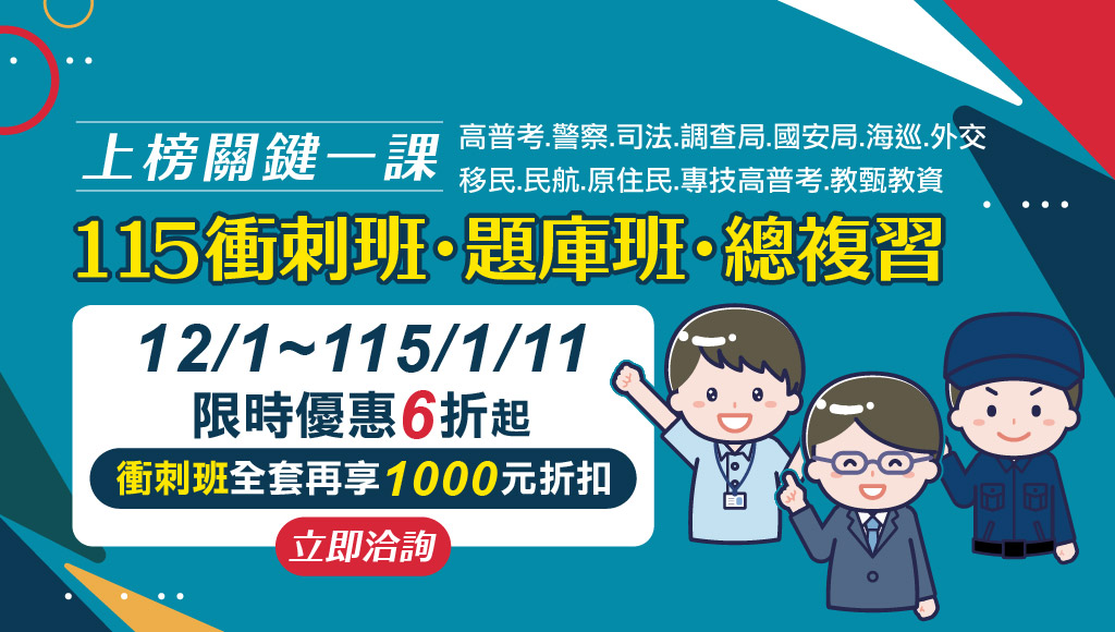 115高普/司法/警察題庫班 考前衝刺搶分關鍵