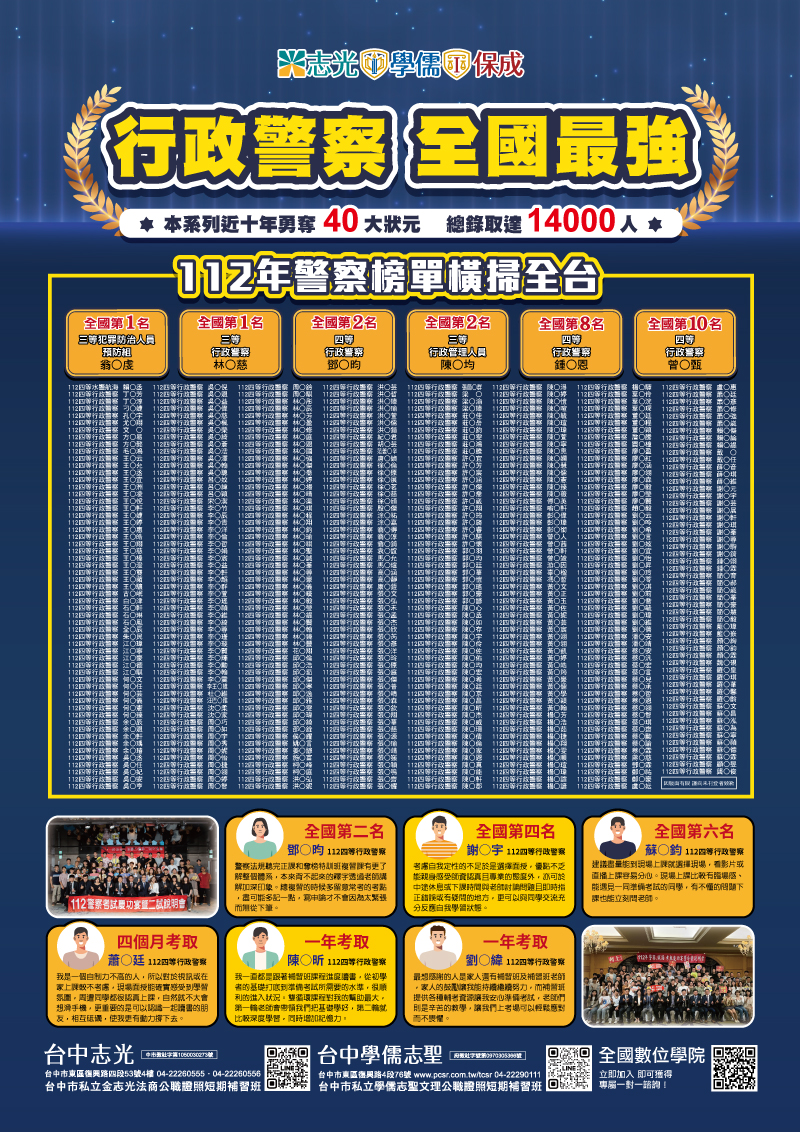 113一般警察考前重點講座、線上模考、准考證免費列印服務、考猜提供、考後解題講座、複試體測說明會,提供你考試最新資訊!