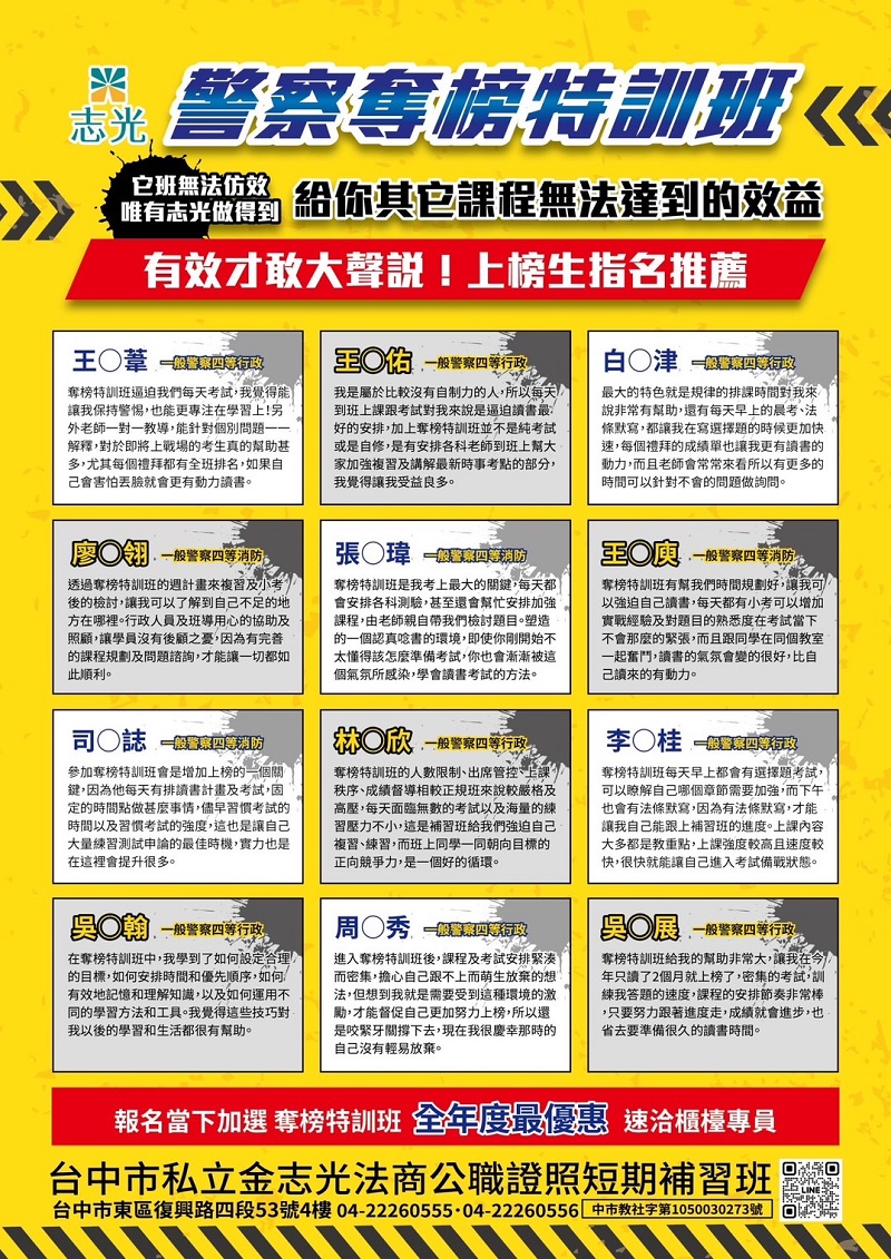 標籤: 高考三級 普考 司法特考四等 調查局三等 一般警察四等 警專考試
