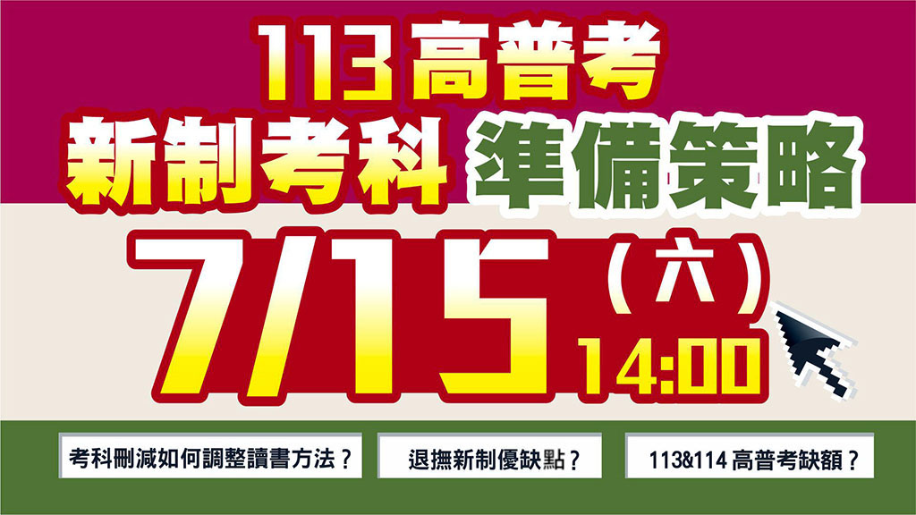 113高普考 7/15(六)14:00 新制考科 準備策略