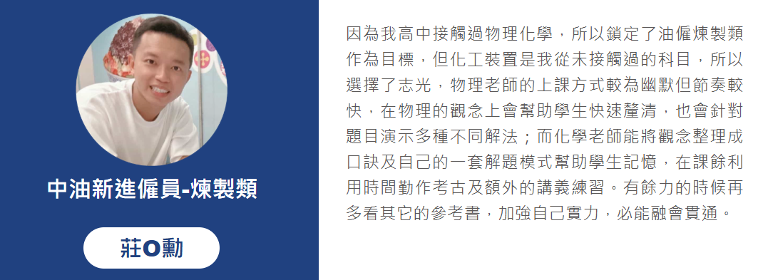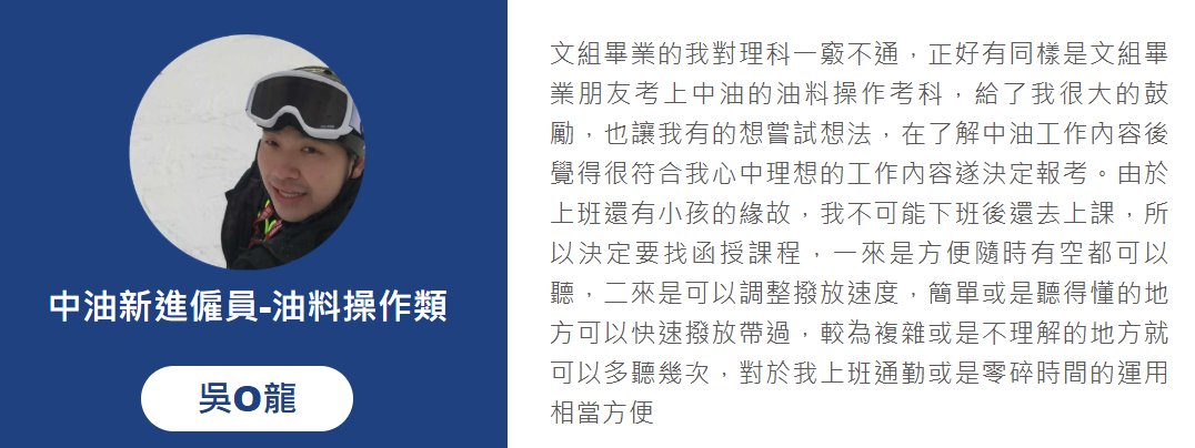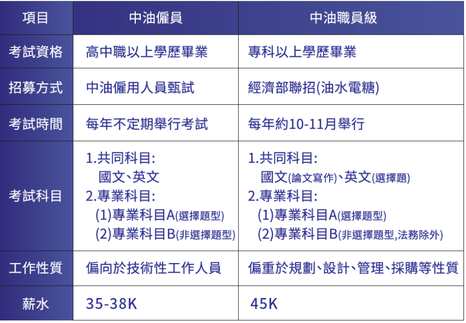 中油僱員報考門檻低,高中職畢業即可報考,考科少且題型為選擇居多,可謂是國營事業中CP值最高的考試,2023年中油衝刺班開課中,憑中油員工證報名再享特約專案價,考中油請認證大台南第1家特約公職補習班【台南志光】