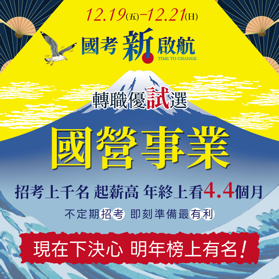 志光學儒|12/19~12/21【公職新啟航】公職/國營/證照全面開課,課程限時77折起
