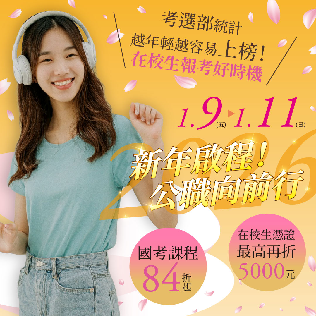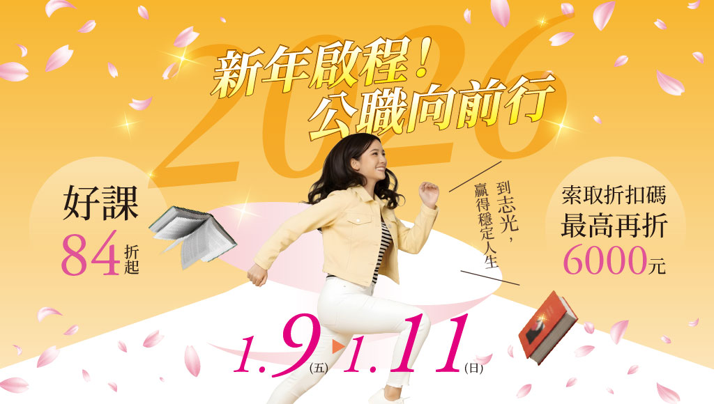 志光學儒【1/9~1/11新年啟程、公職向前行】好課84折起/證照66折起