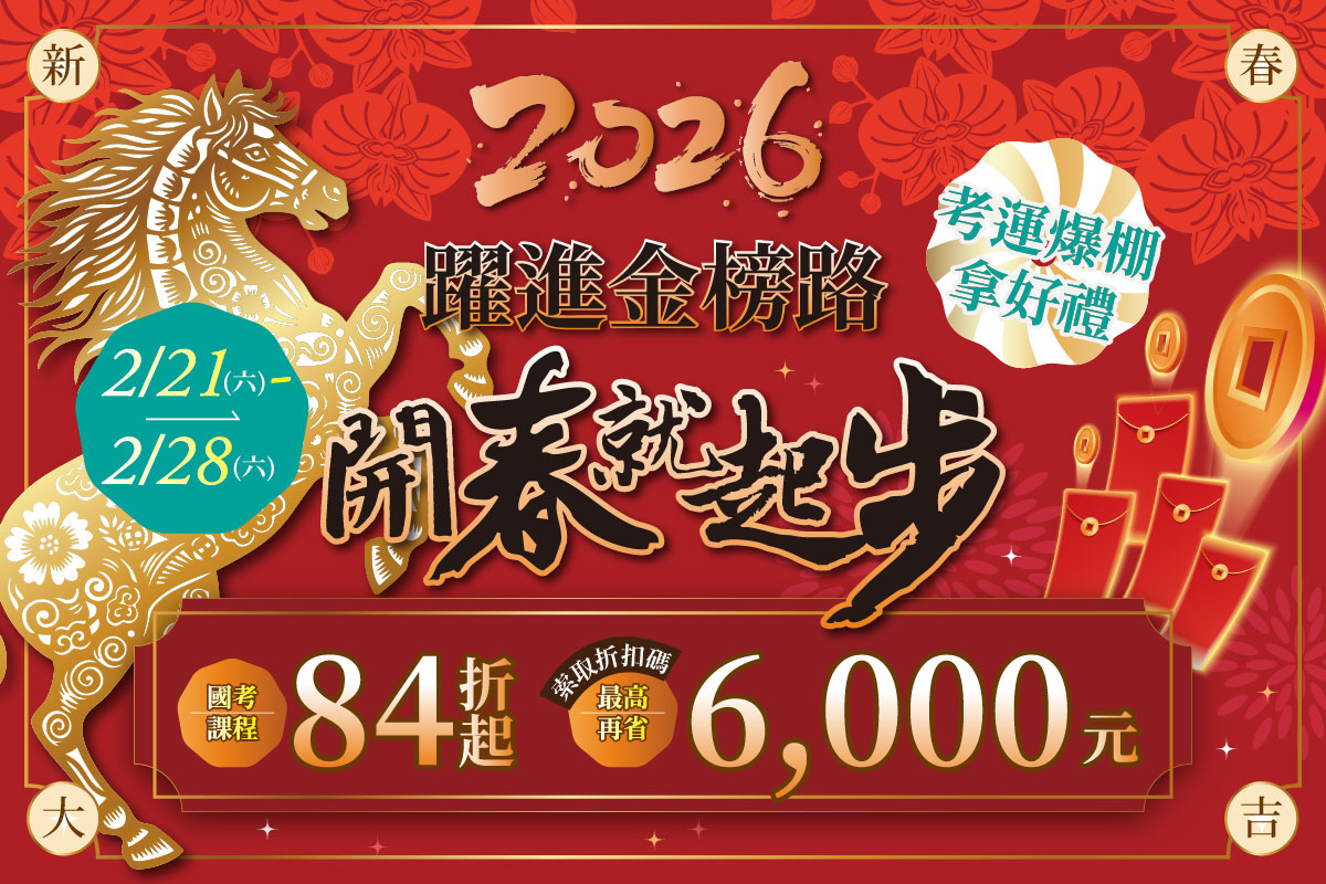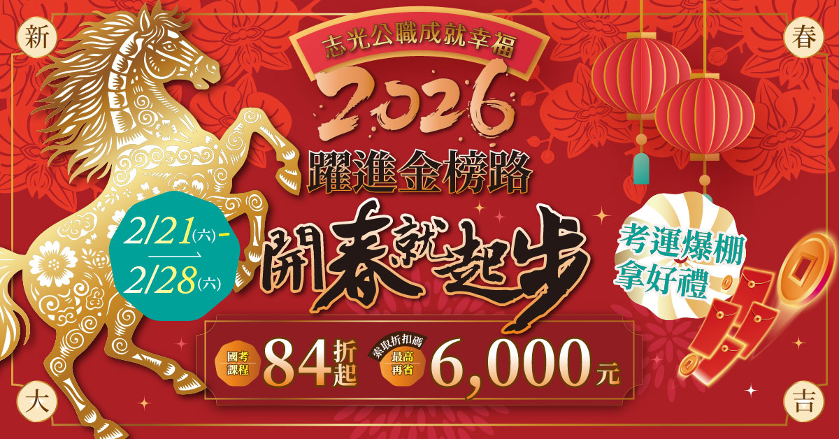 志光學儒【2/14-2/28躍進金榜路,開春就起步】優惠84折起,再抽折扣碼888!!公務人員工作穩定、起薪高、年年調薪、新制退休制度優渥,加上5年退休潮,現在將是您前進公職的最佳時機!