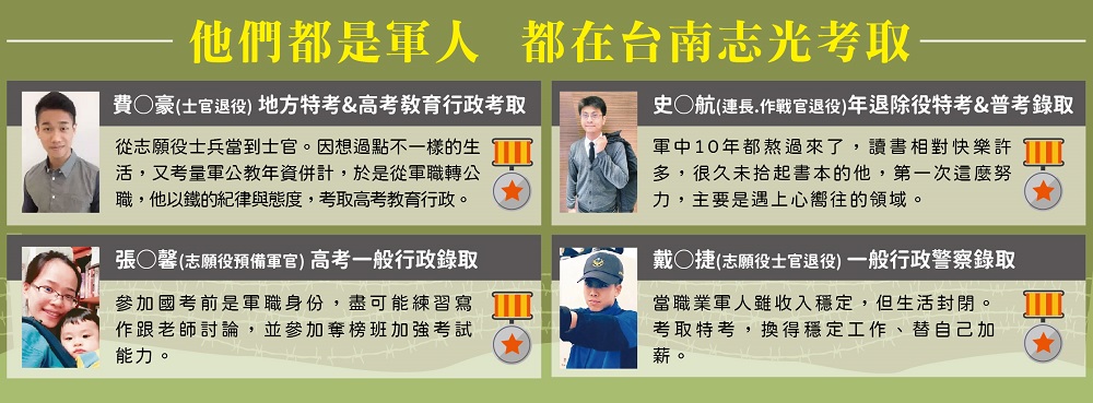 2023/112 國軍退除役官兵輔導,台南志光軍人輔考專案!