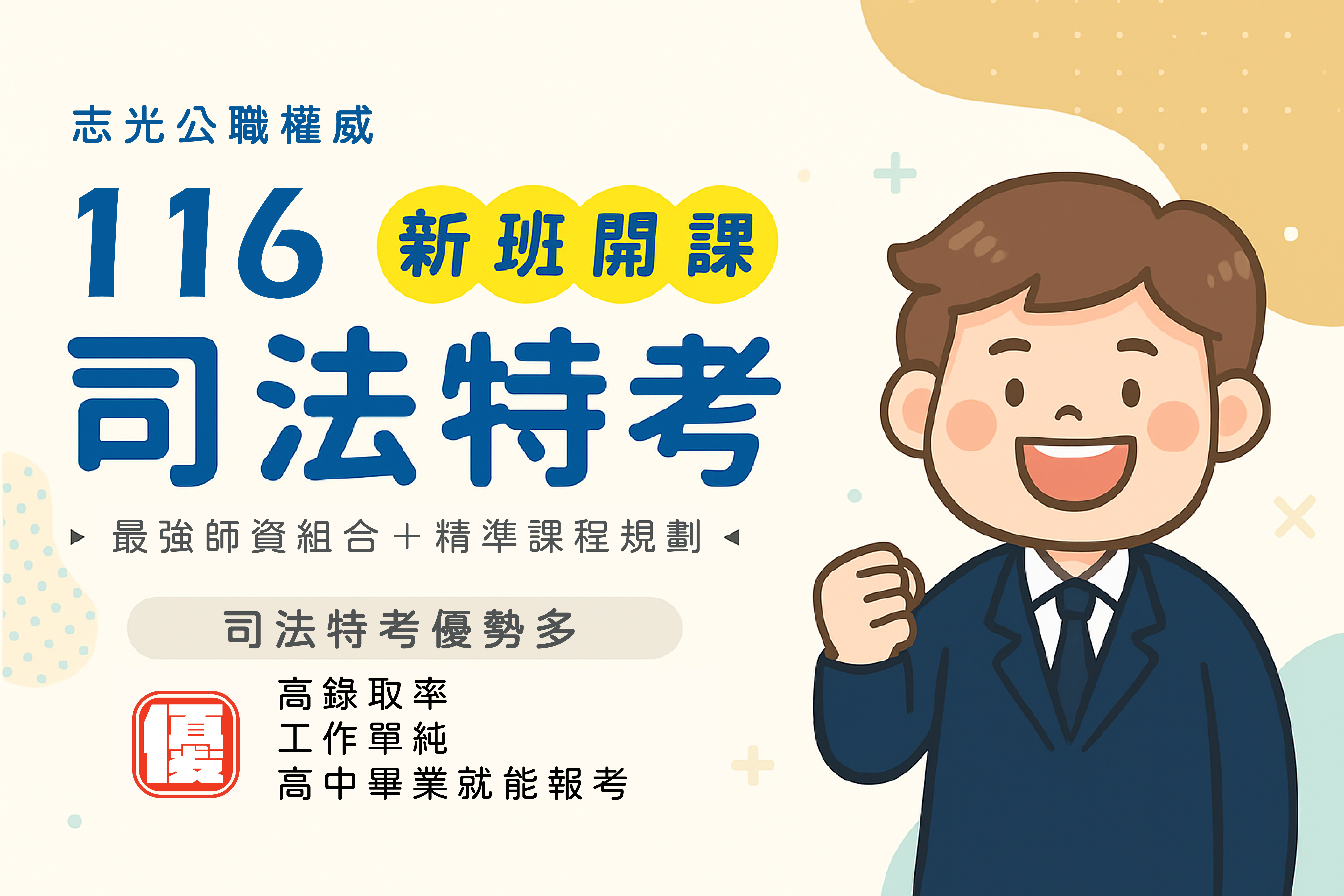 入主司法機關,你也能考取,不是本科生也能在法界出頭天,就算非本科系,你也能守護正義!每年預計五月報名,八月考試司法人員考試分為三、四、五等,分為檢審、司法行政職系及矯正職系。PTT國考版、DCARD國考版、LINE群熱搜討論,大台南區準備司法特考找台南志光,能在短時間內完成你成為公務人員的需求。