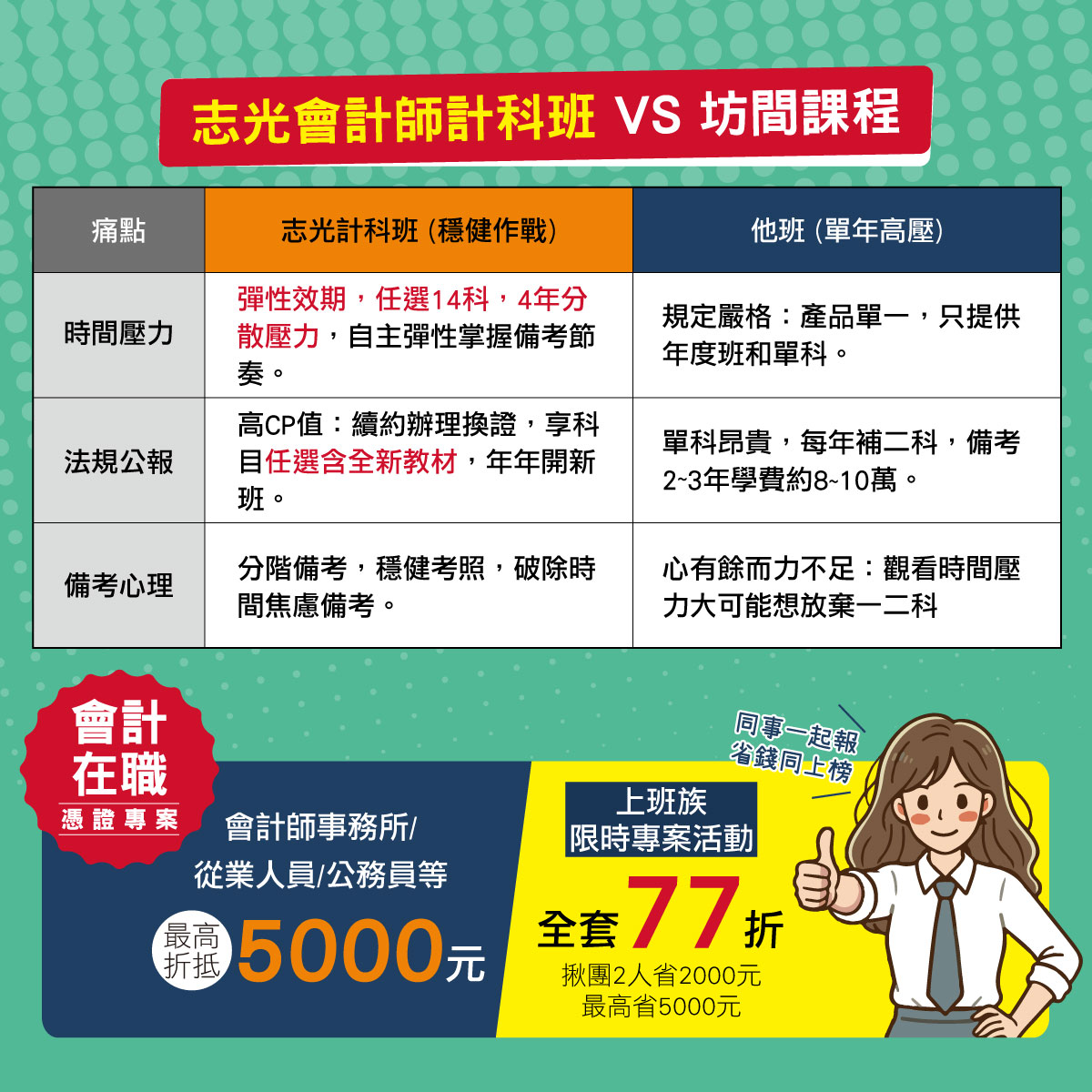 5000元上榜生熱門課程推薦學生證/在校成績會計師事務所在職證明最高再享折扣5000元