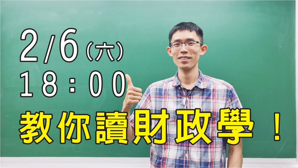 【2/6(六) 18:00 大學長返班】 教你讀財政學:佳作觀摩、自由提問、小組討論│109年高考經建行政探花/109年普考經建行政狀元- 鄭志賢