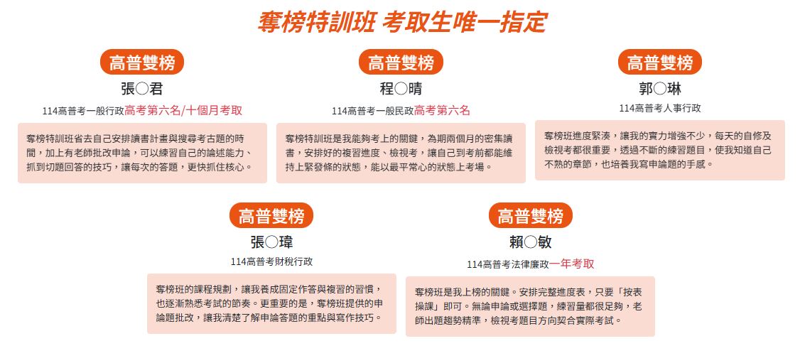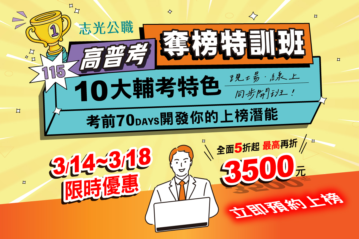 【別讓一分的差距 毀了一年的努力】高普考奪榜特訓班,上榜率最高、訓練最紮實的課程