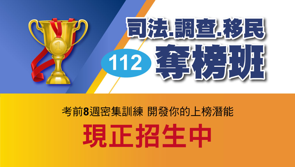 112年司法特考/調查局/移民行政奪榜最後一哩路,就靠高錄取的『奪榜班』!