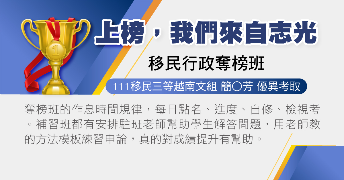 110移民行政越南文組榜眼陳學姐考取分享