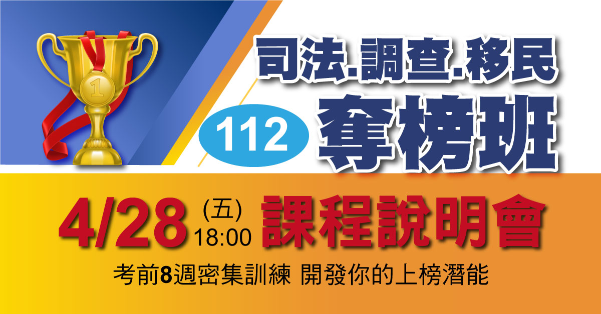 112年司法特考/調查局奪榜最後一哩路,奪榜班、題庫班