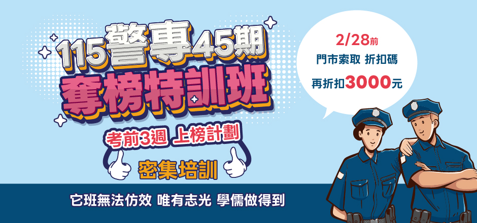 115警專奪特班即將開訓,現在報名按身分別優惠