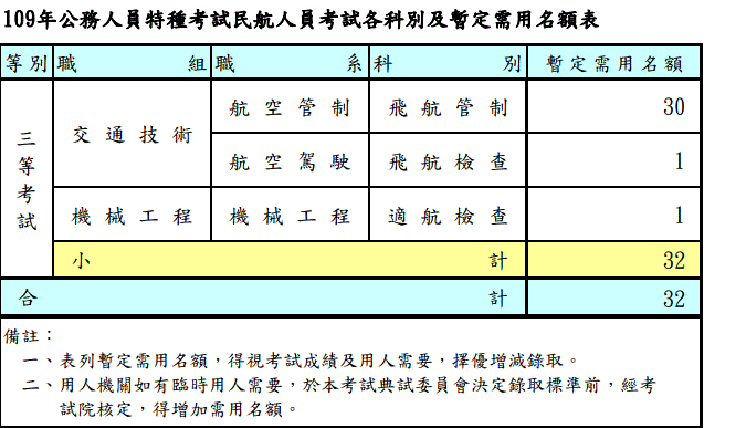 | 三等 | 飛航管制 | 12 | 15 | 10 | 10 | 21 | 21 | 18 | 33 |