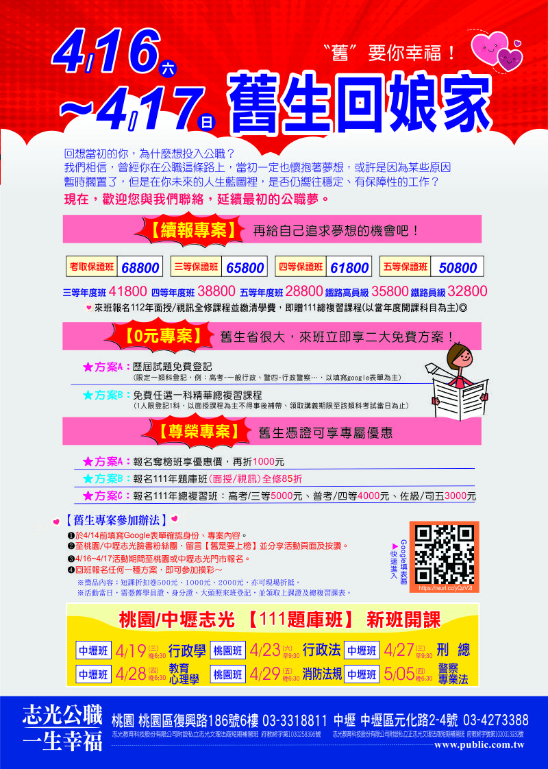 ※活動當日,需憑舊學員證+大頭照來班登記,並領取上課證及總複習課表。